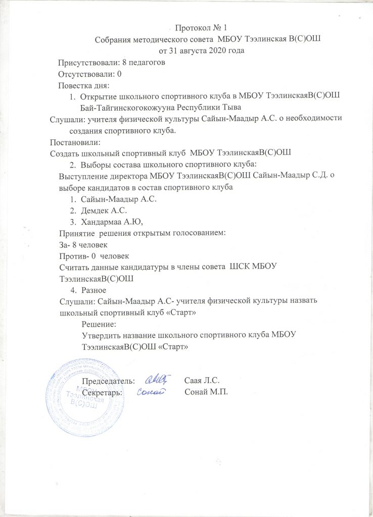 Протокол съезда и конференции о создании ШСК «Старт»