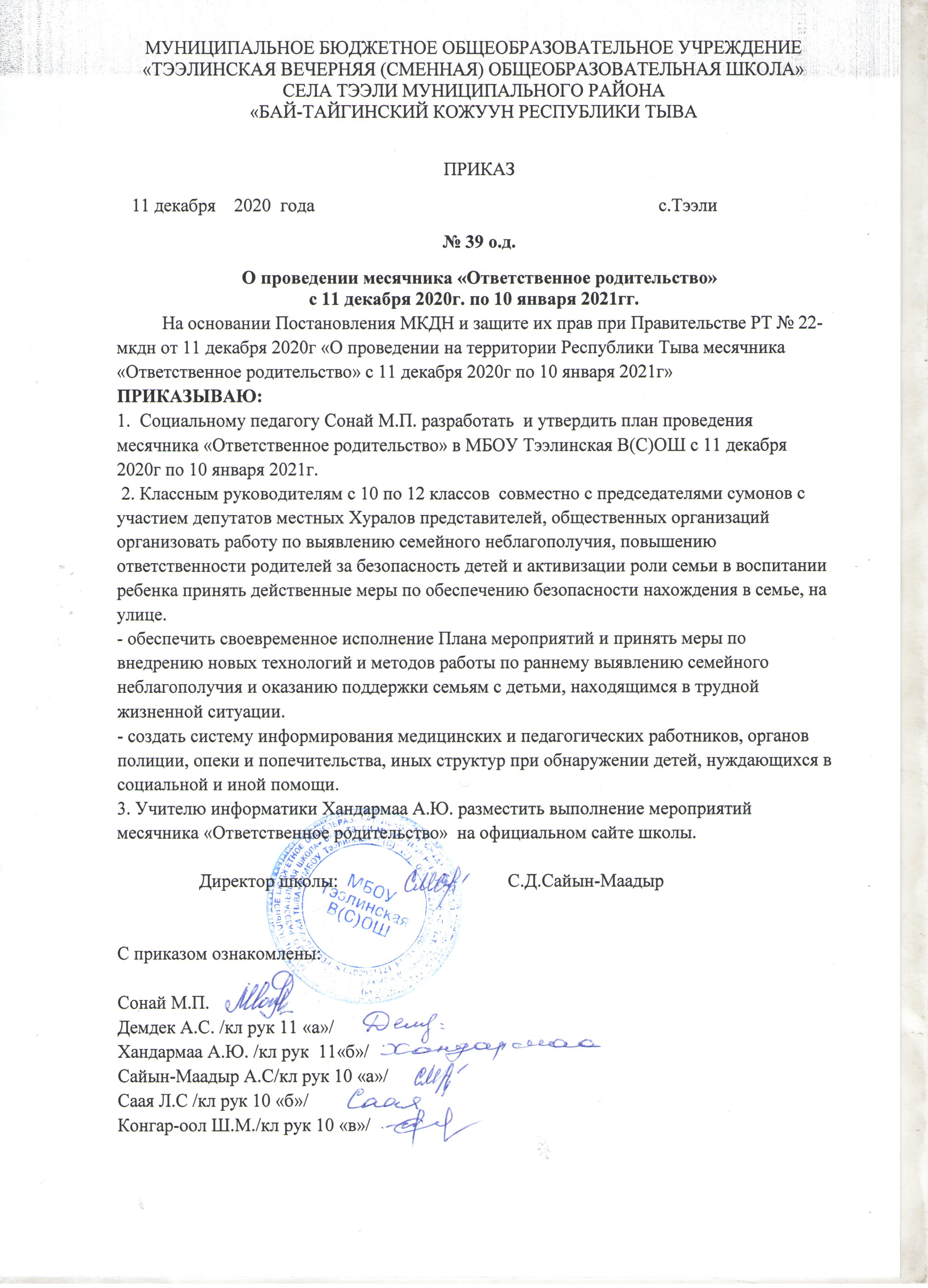 Ответственный родитель Постановл 22-мкдн месячник Ответственный родительСкачать Месячник Отв родительствоСкачать Уведомление для родителейСкачать Исполнение Месячника «Ответственное родительство»Скачать Муниципальное постановление «Ответственное родительство»Скачать Школьный приказ №39 о.д Скачать Приложение приказа №39 од Скачать